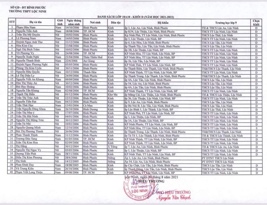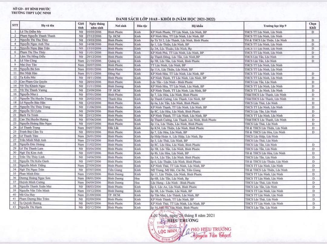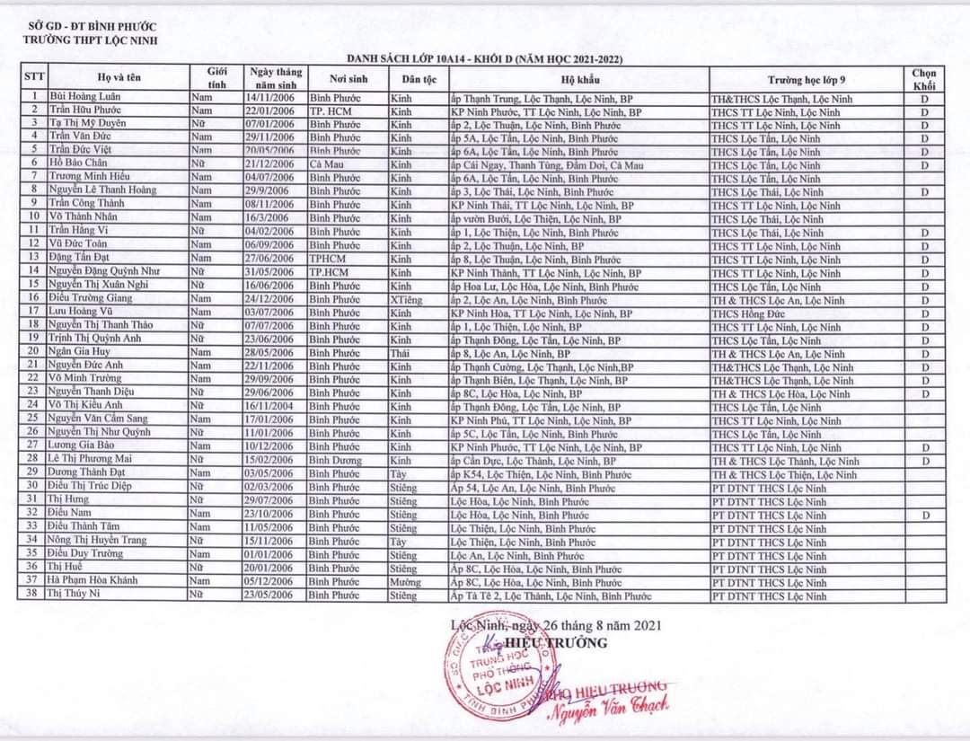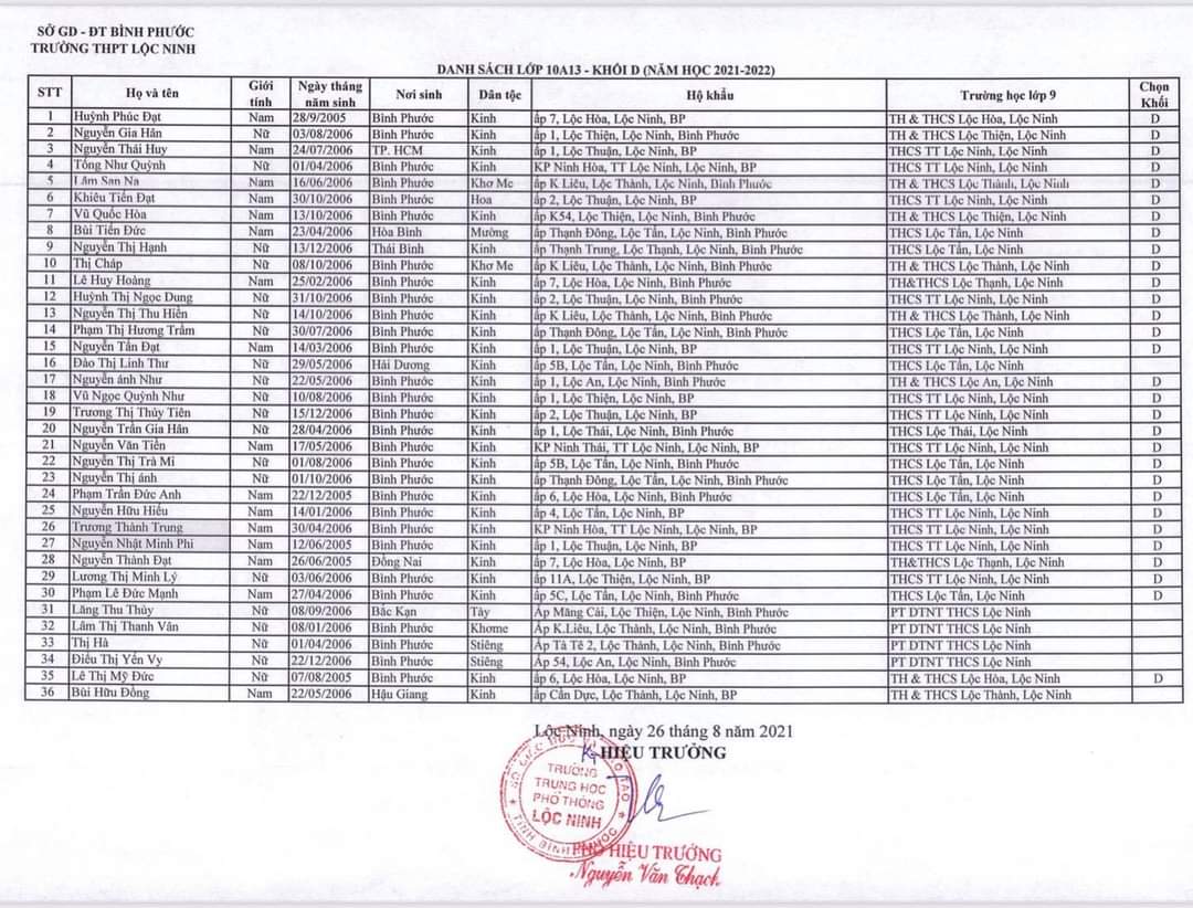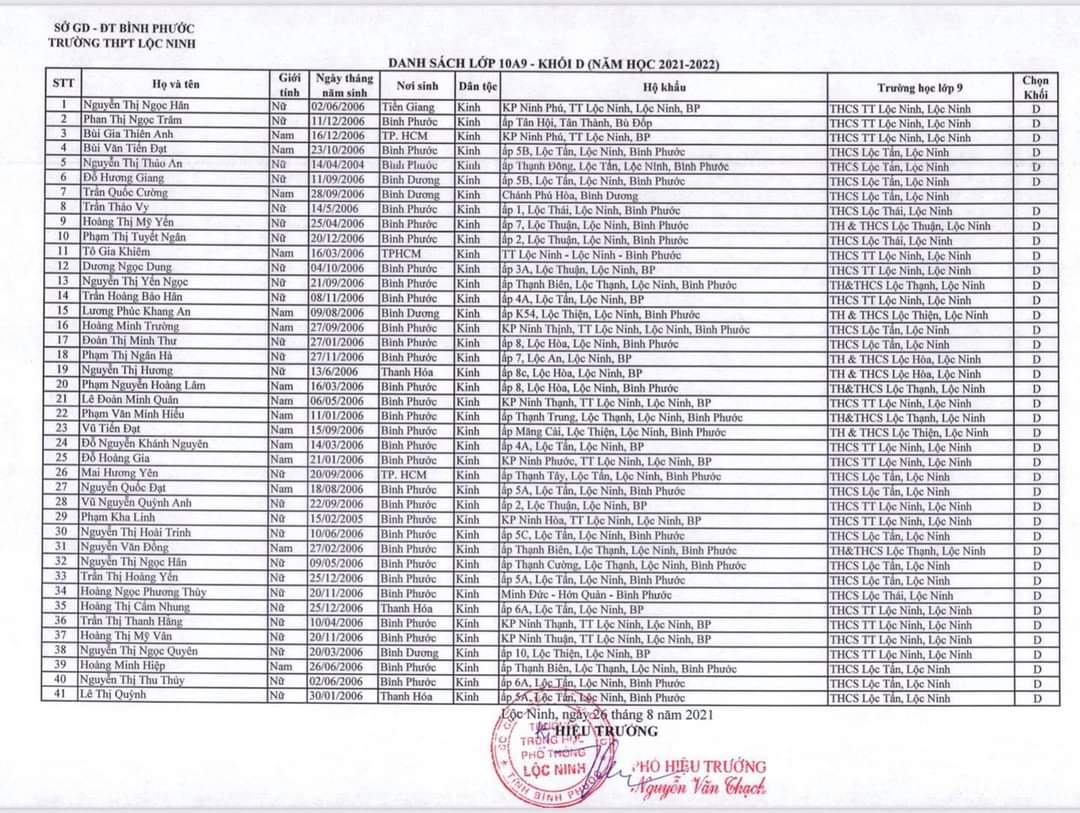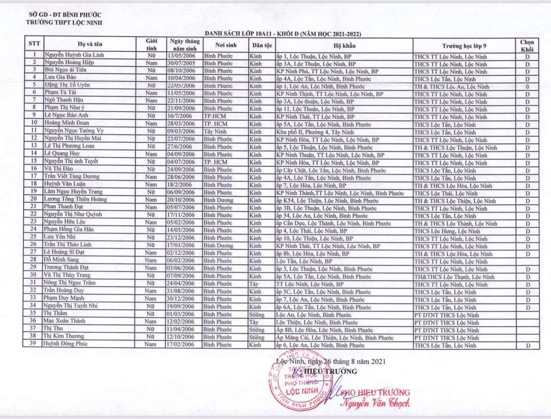 Danh sách lớp học năm học 2021-2022