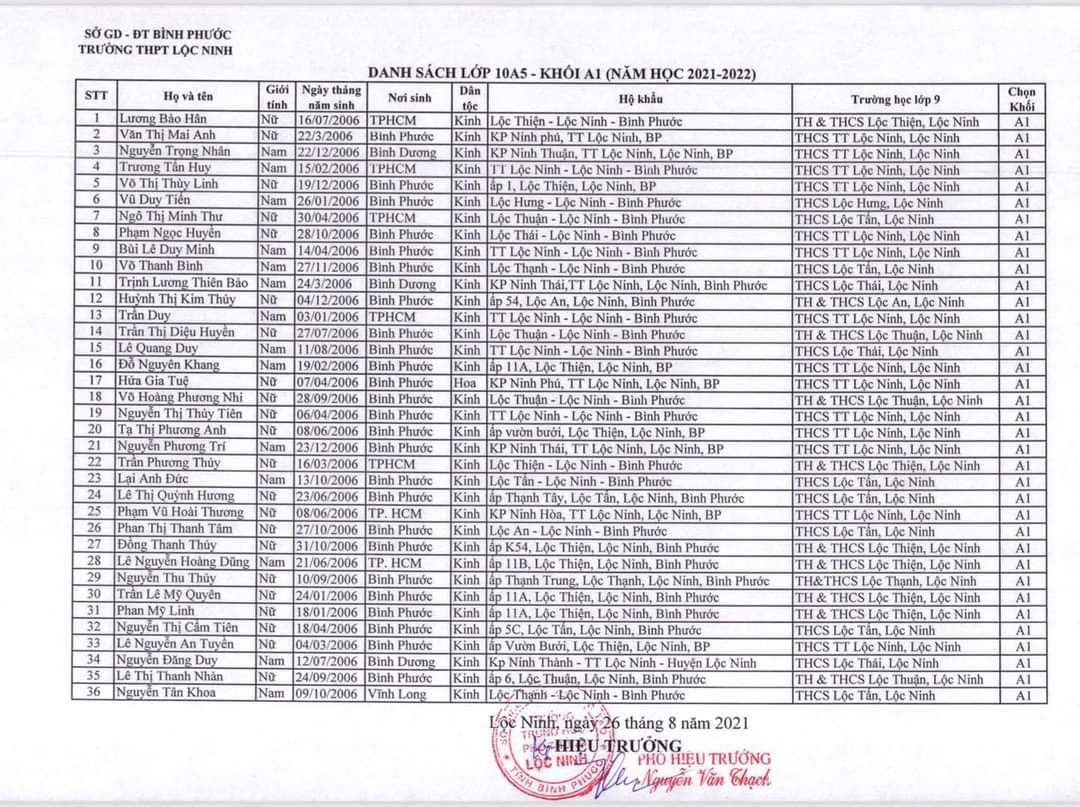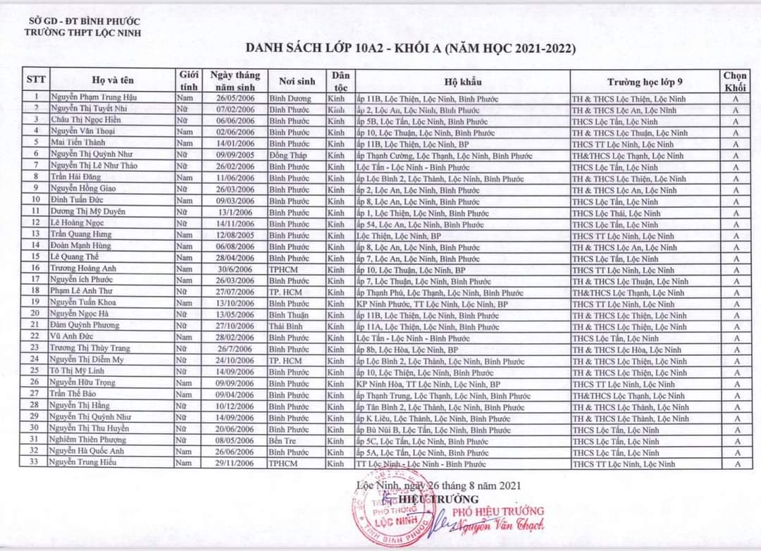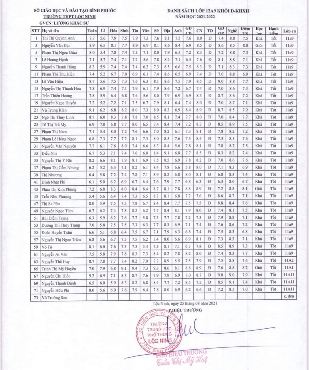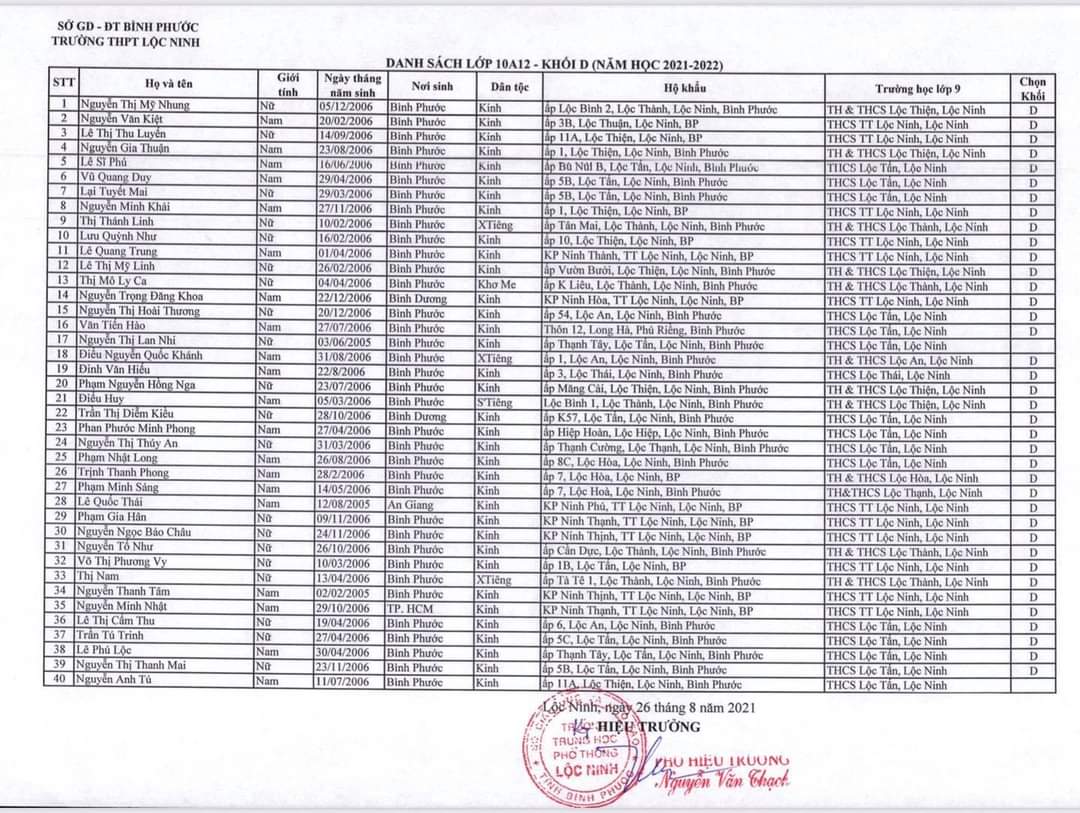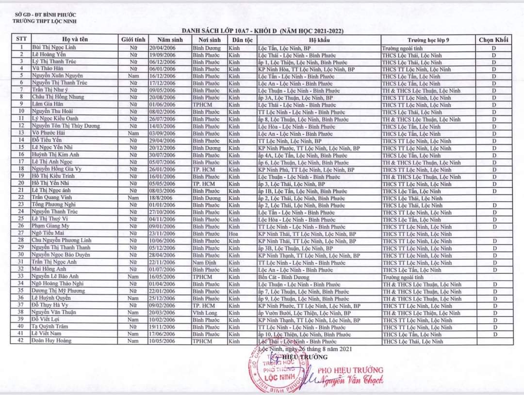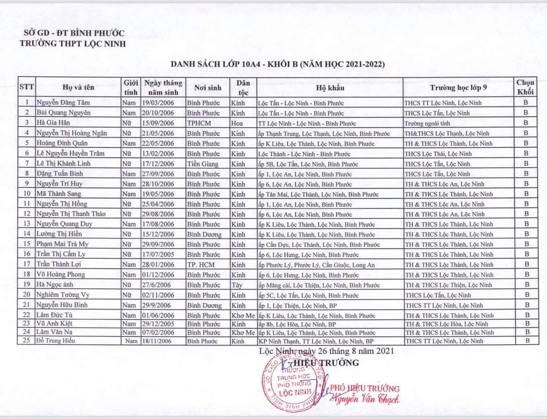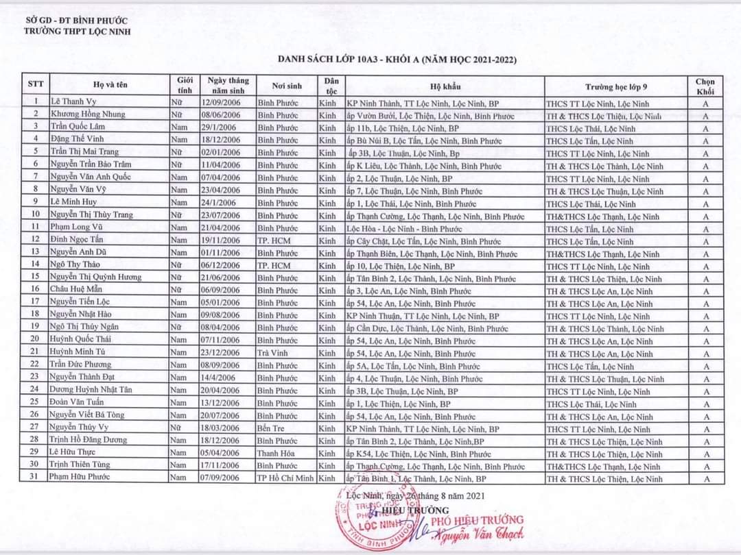 Danh sách lớp học năm học 2021-2022