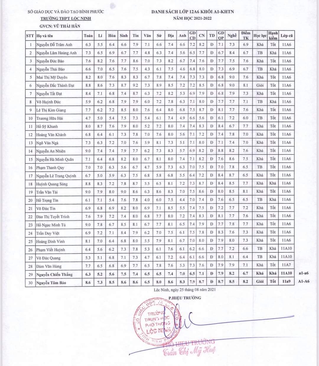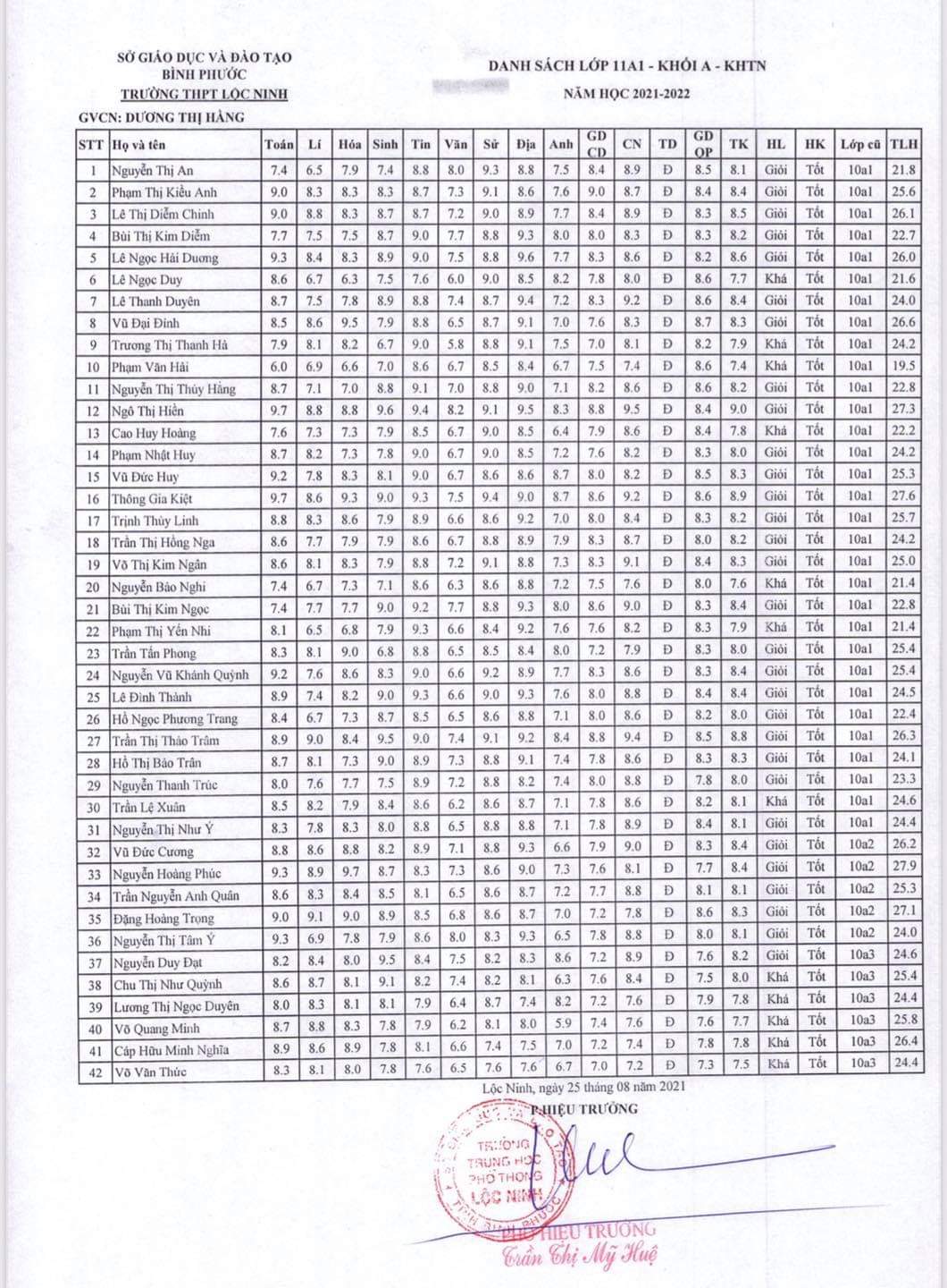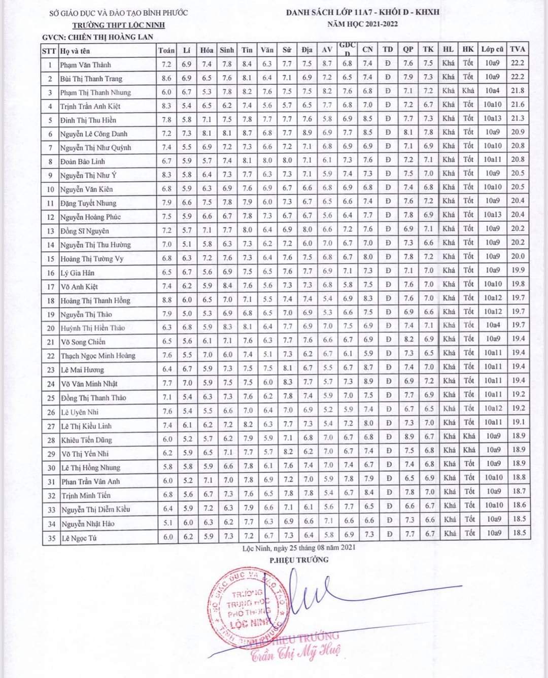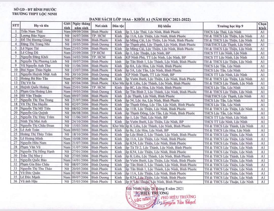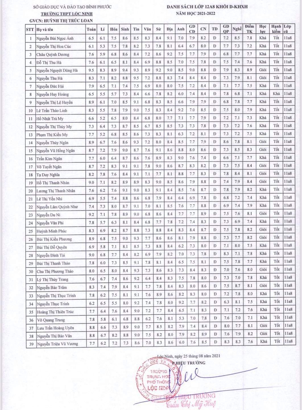 Danh sách lớp học năm học 2021-2022