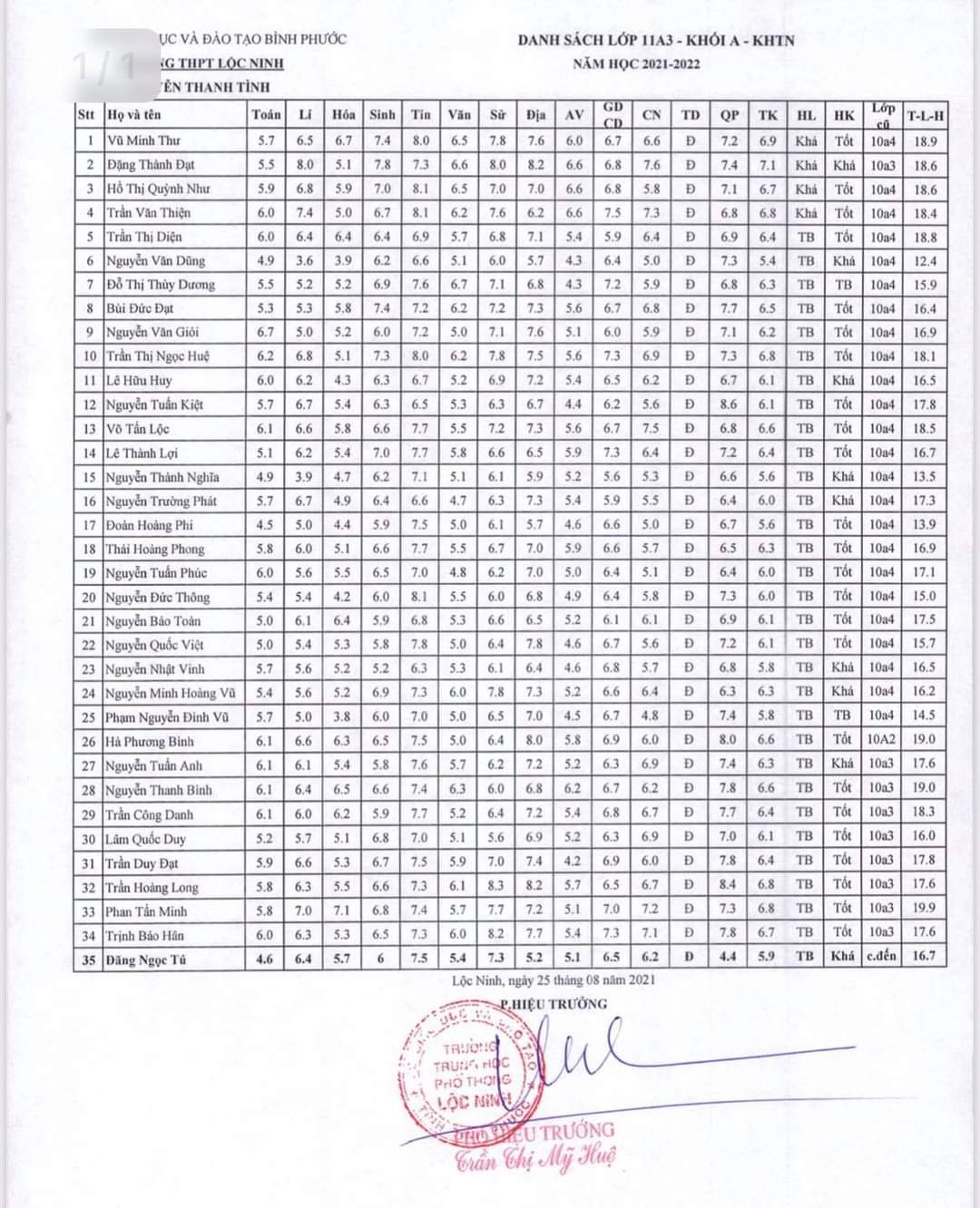 1/ BIÊN CHẾ LỚP HỌC NĂM HỌC 2021-2022