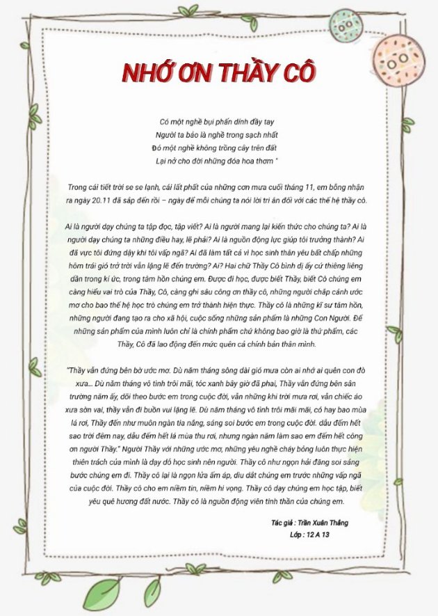 Hoạt động Chào mừng ngày 20/11/2021 của các lớp.